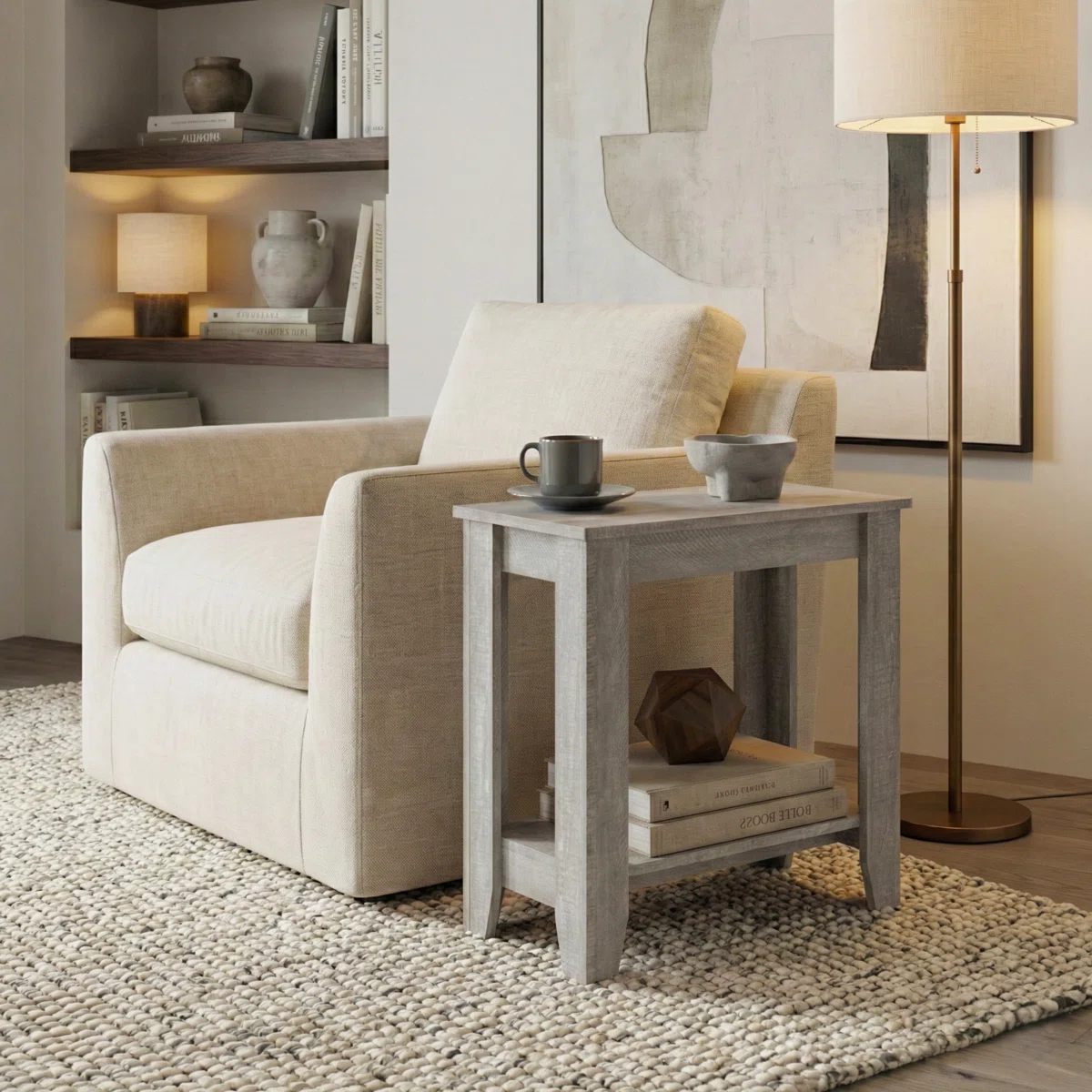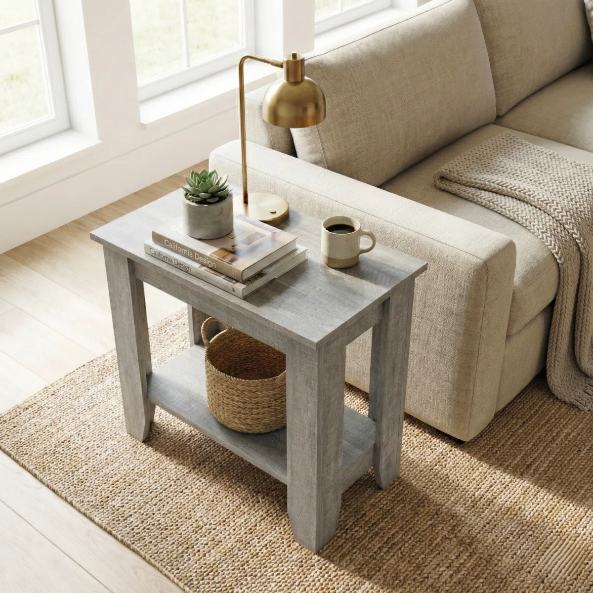 • Smart Storage: Don’t let its compact footprint fool you. The two-tier design provides ample space. Keep your remote, a warm cup of tea, and a table lamp on top, while utilizing the lower shelf to display your favorite coffee table books or a woven storage basket.