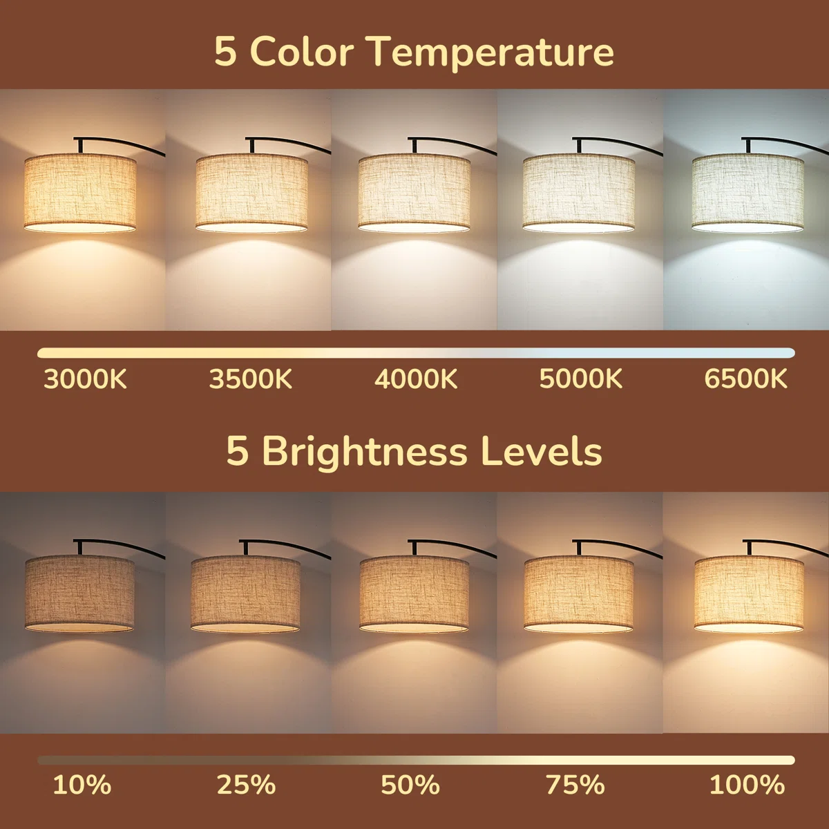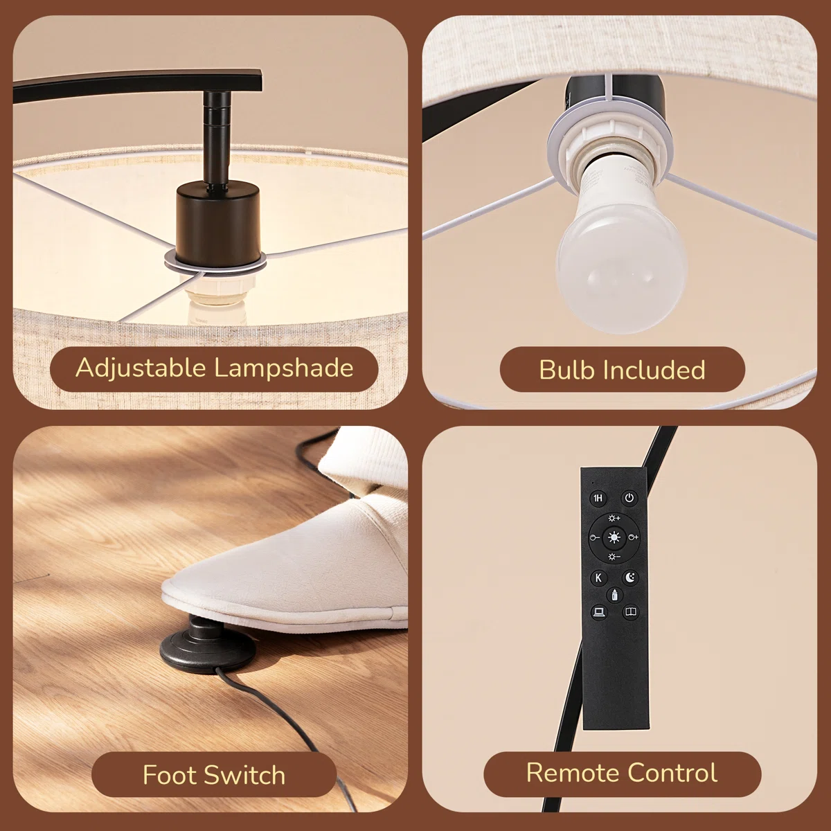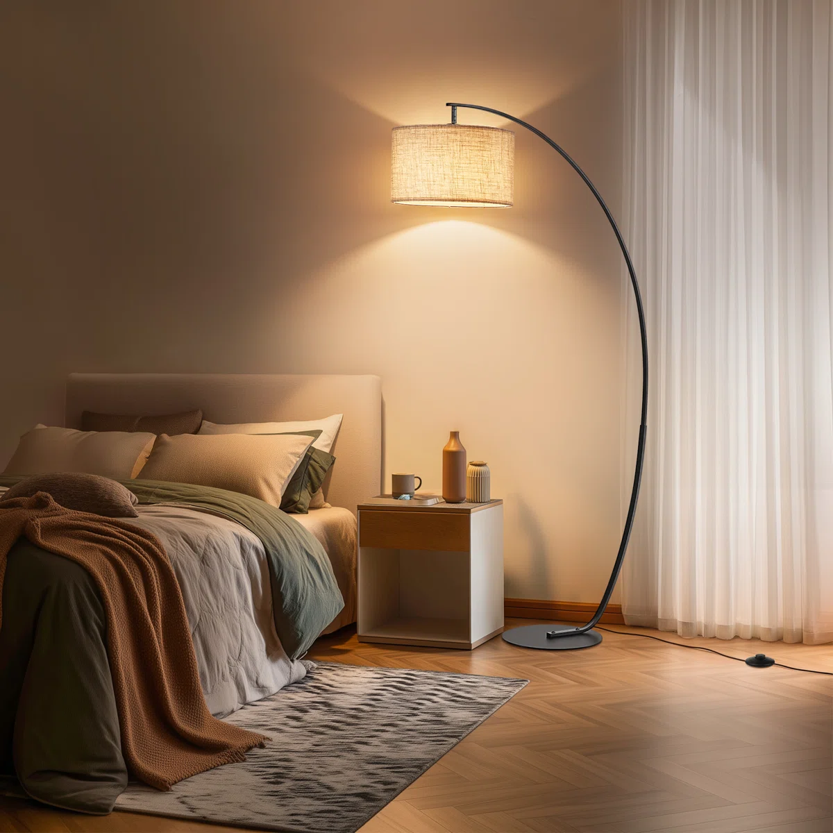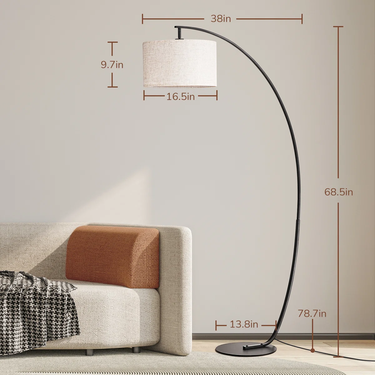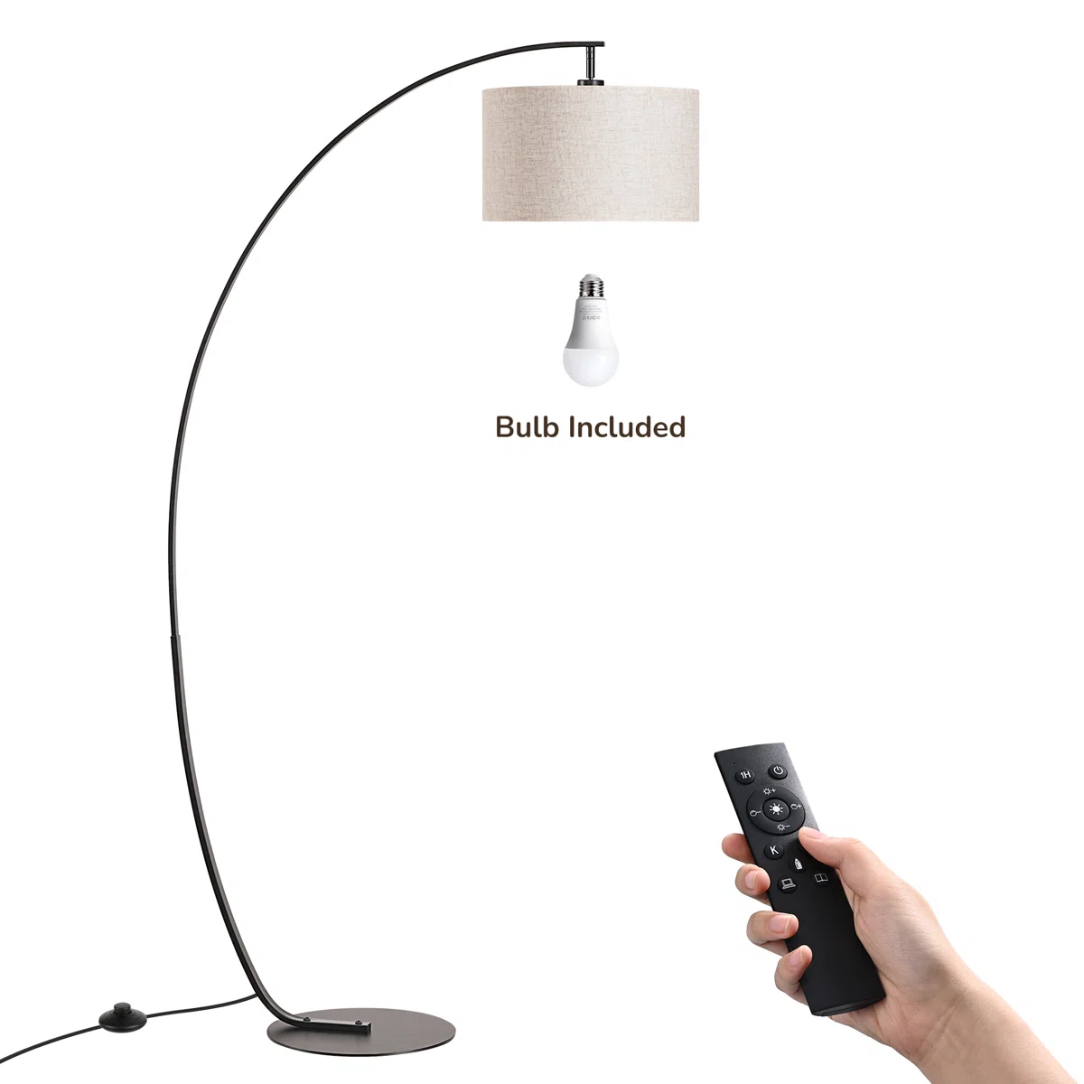 🛋️ The Ultimate Statement Piece: Featuring a dramatic 78.7-inch sweeping reach, this large arc lamp perfectly illuminates your seating area from behind the sofa without taking up central floor space. 🎛️ Dual Control Convenience: Easily adjust your lighting from the comfort of your couch using the included remote control, or use the convenient step-on foot switch when walking by. 💡 Customizable Smart Bulb Included: Comes with a premium LED bulb offering 5 color temperatures (3000K to 6500K) and 5 brightness levels (10% to 100%) to match any mood or activity. 🔄 Adjustable Lampshade: The versatile linen drum shade can be tilted to direct light exactly where you need it most, whether for reading, working, or entertaining.
