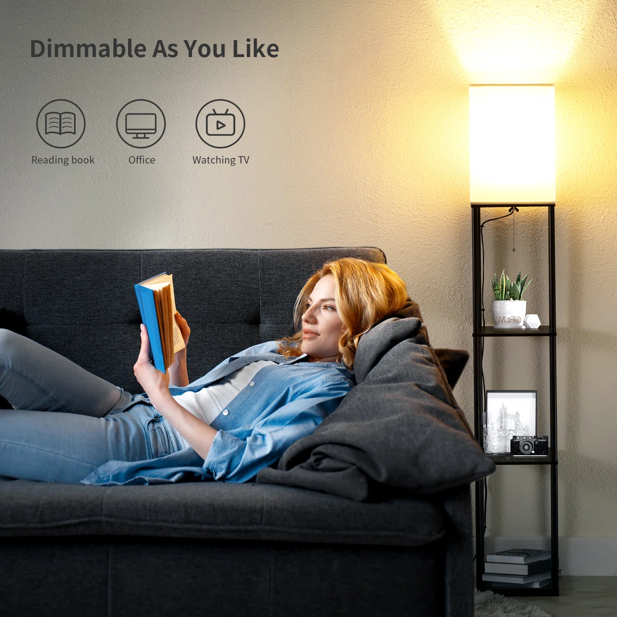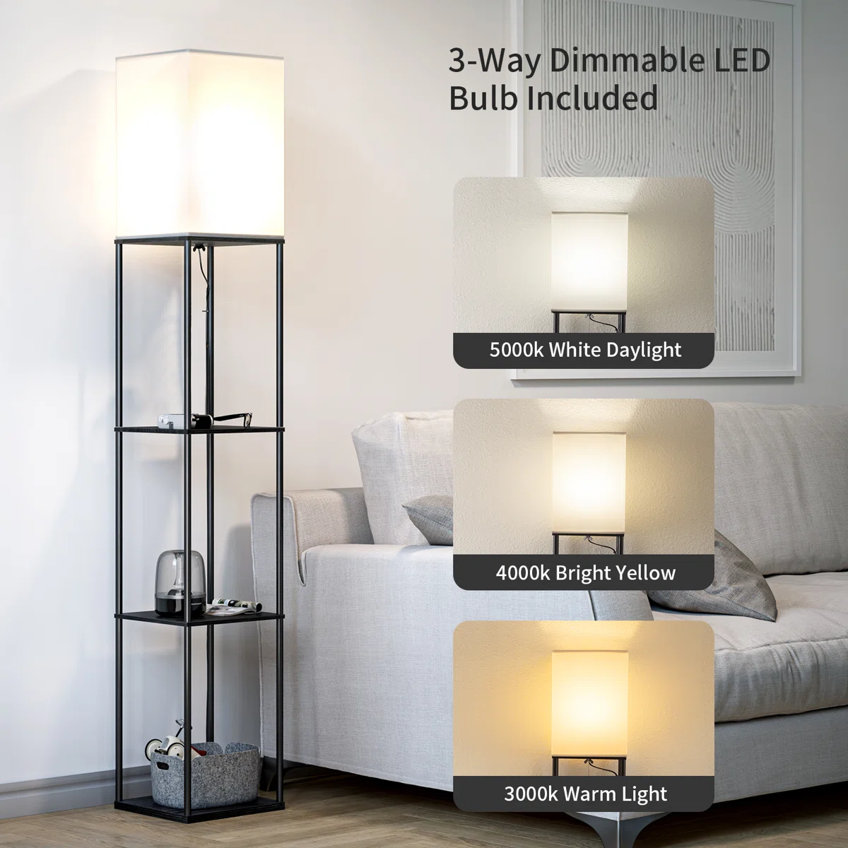 📚 2-in-1 Design: Maximize your space with this ingenious floor lamp that features three built-in display shelves, perfect for showcasing photos, plants, books, or art pieces. 🛏️ Versatile Placement: Use it in the living room to frame your TV stand, next to your sofa as an end table, or in the bedroom as a brilliant space-saving nightstand. 💡 Soft Ambient Glow: The square off-white fabric shade diffuses the light perfectly, casting a warm, eye-caring, and cozy illumination throughout the room. 🖤 Sturdy Minimalist Frame: Constructed with a durable black metal frame and high-quality MDF shelves, offering a sleek, modern industrial look that complements any decor.