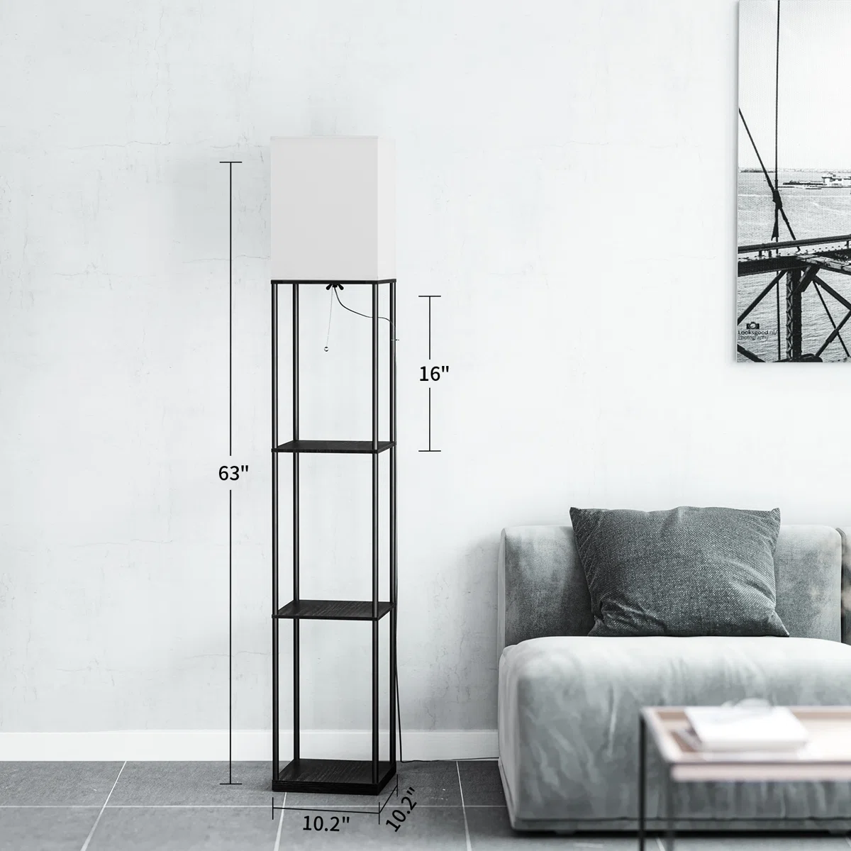 Orion 63″ Shelf Floor Lamp with Display Shelves