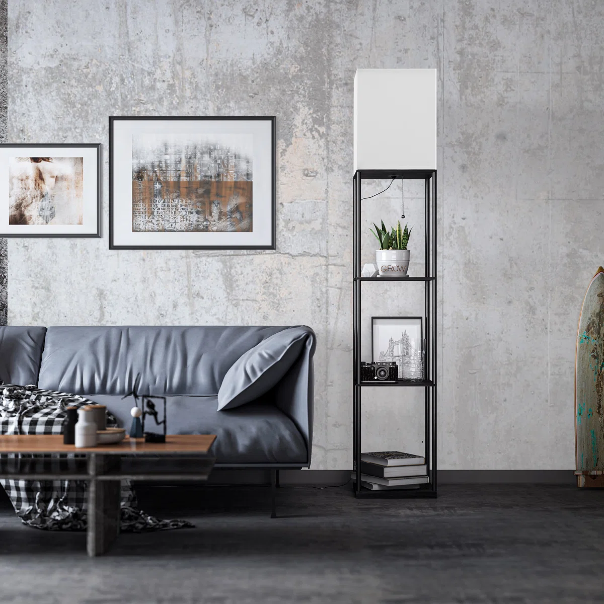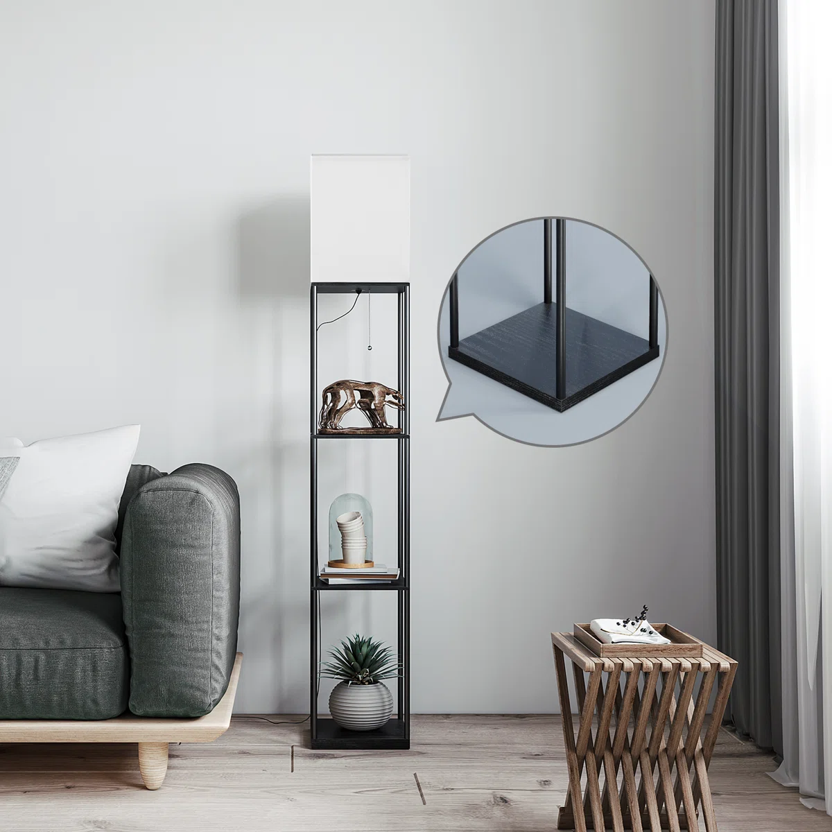 Declutter your space and upgrade your lighting with the Orion Shelf Floor Lamp.
