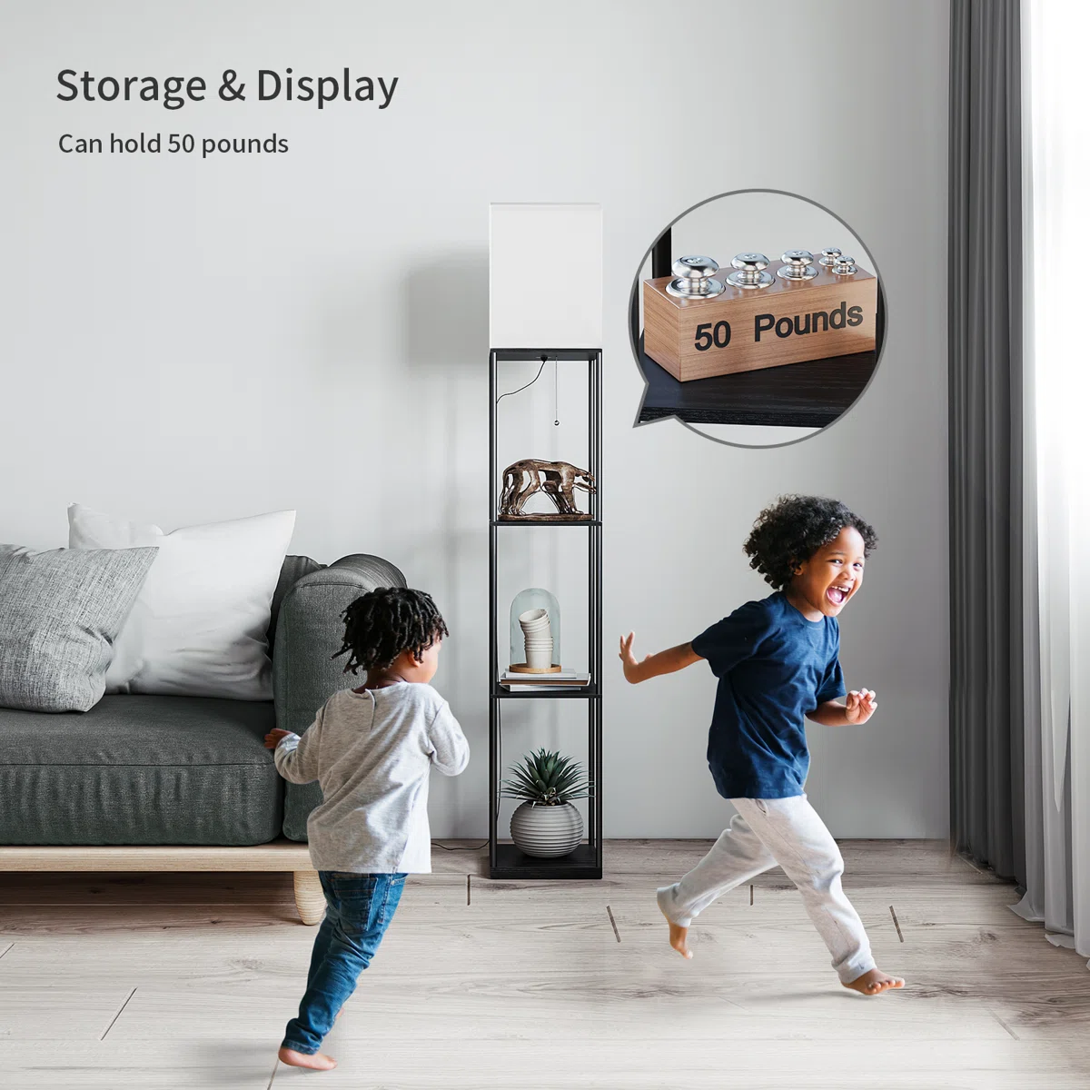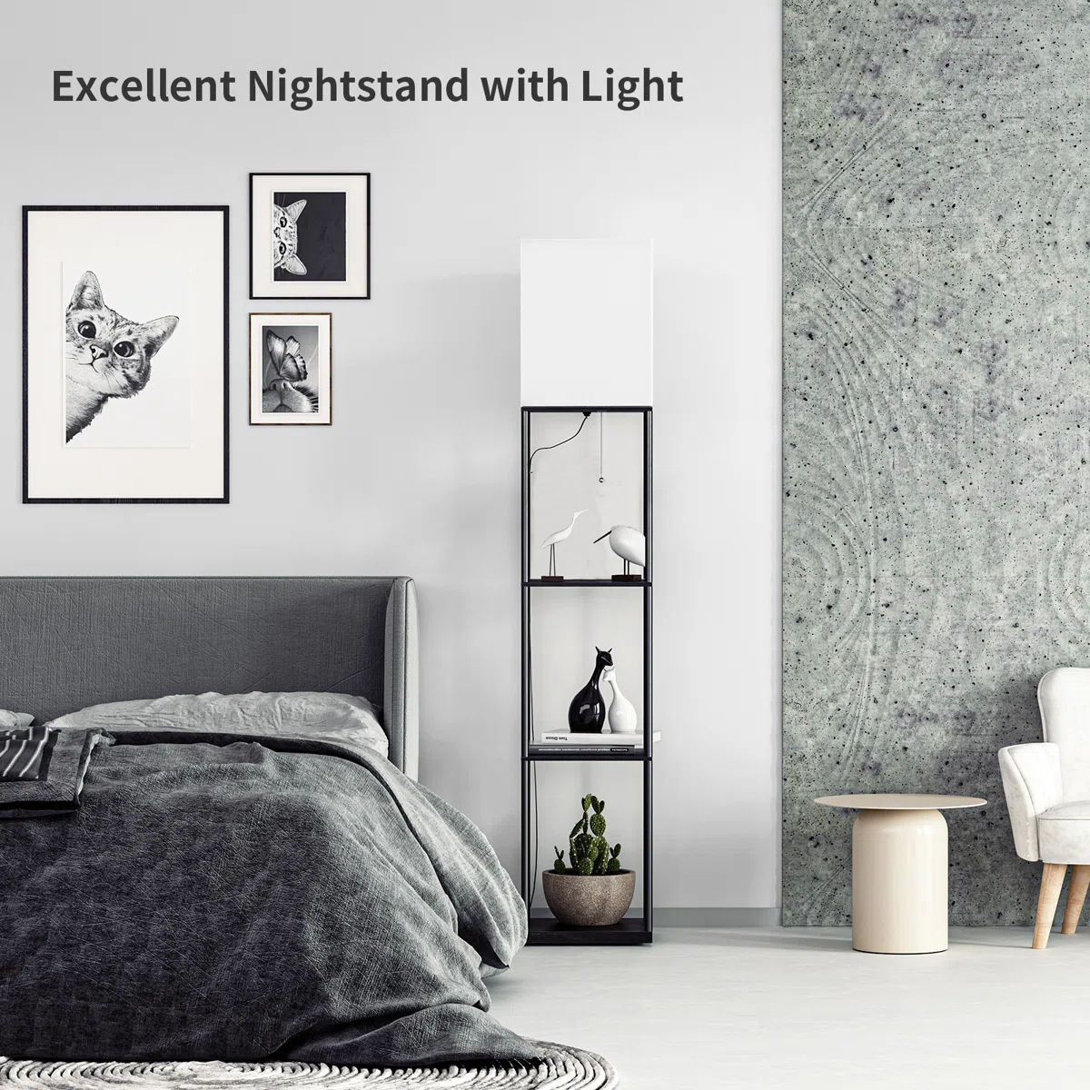 • The Perfect Nightstand Alternative: Short on bedroom space? The Orion lamp is your answer. Use the shelves for your phone, glasses, and a book, while the lamp provides the perfect reading light right by your bed.